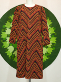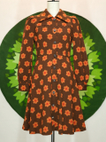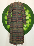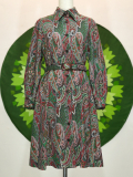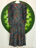黒地に緑赤茶などのサイケ花柄ワンピース