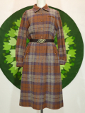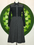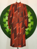 朱色地に黒のグラデーション格子柄スタンドカラーワンピース