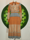 オレンジ白グレーなどの花格子やダイヤ柄ワンピース