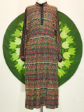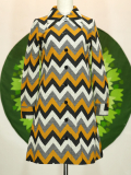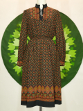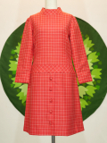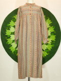 橙水色えんじなどの民族柄スタンドカラーワンピース