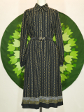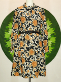 【馬里邑】黒地に赤緑水色などのオリエンタル柄ワンピース