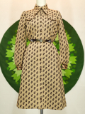 ベージュ地に焦茶の2つの四角柄ワンピース