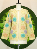 薄黄色地に花やドットの刺繍入りボレロカーディガン