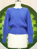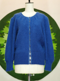 青紫地に金糸の粒柄ボーカラーニットワンピース