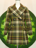 緑橙ベージュなどのチェック柄ダブルボタンコート