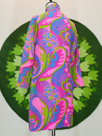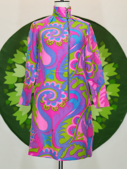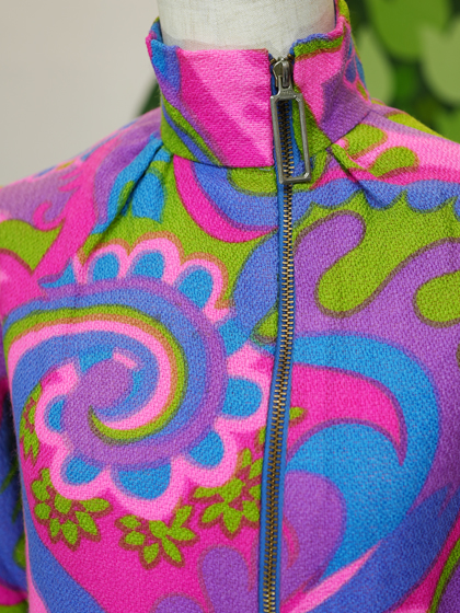 ピンク青紫キミドリのサイケ柄ZIP UPワンピース