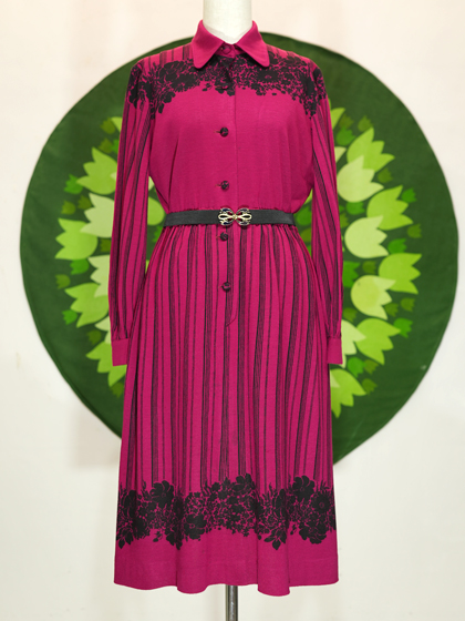 レトロな柄がとてもかわいいです。ウエストにはゴムが入ってますがほぼ伸び切ってます。写真のベルトは付属しておりません。