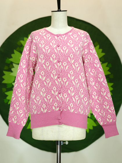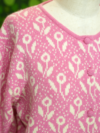 レトロな花柄がとてもかわいいです。生地は毛90%、ナイロン10%(アンゴラ15%)です。