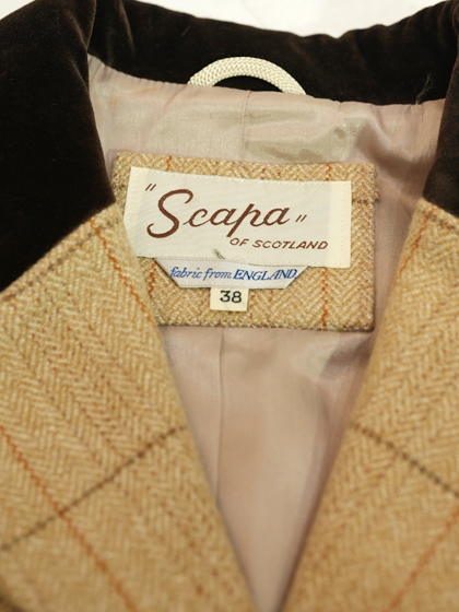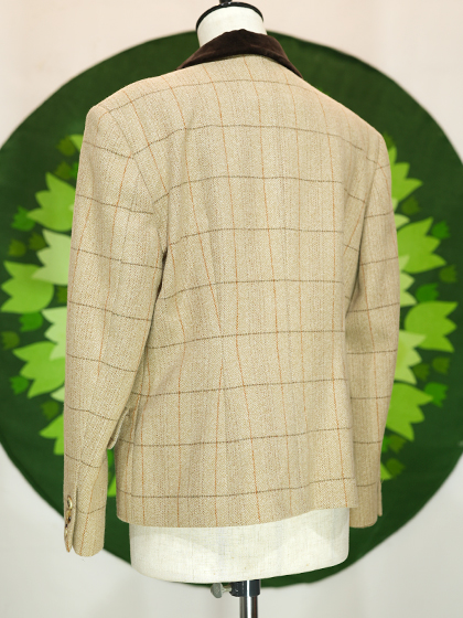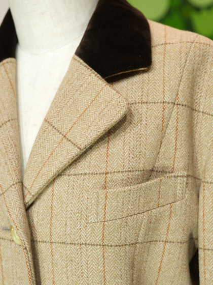 ベージュ地に橙と茶の格子柄ジャケットです。