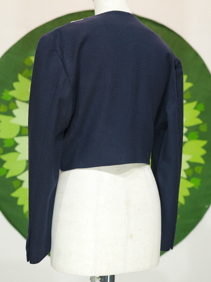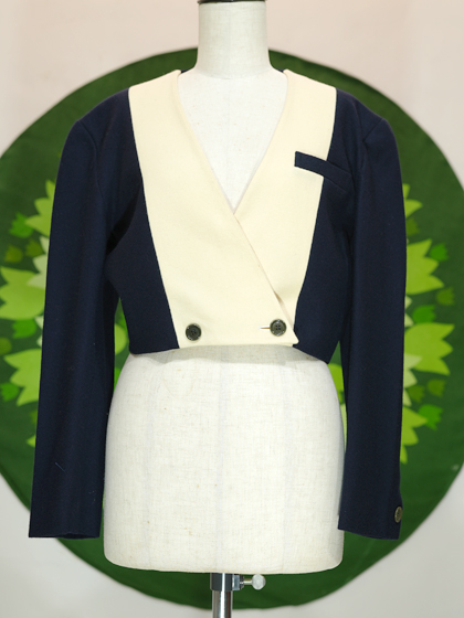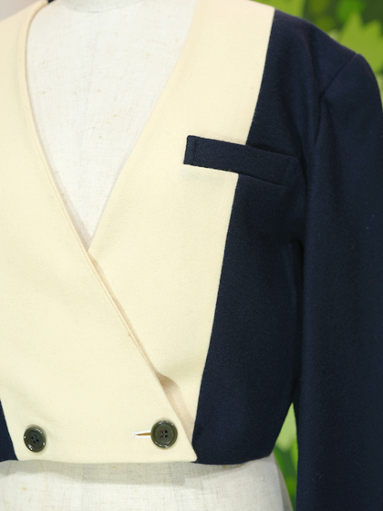 紺とアイボリーの切替デザインジャケットです。