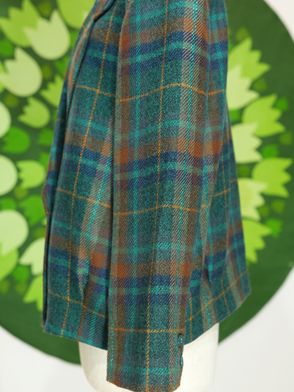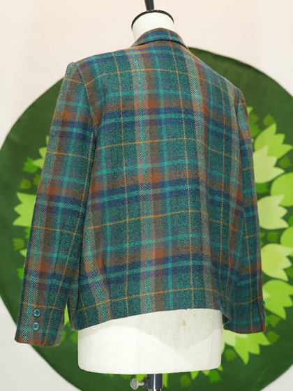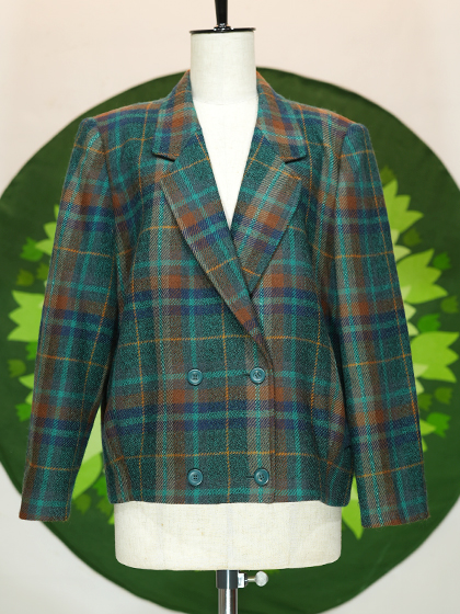 緑青茶などの格子柄ダブルボタンジャケットです。