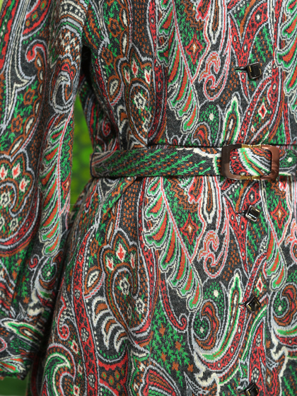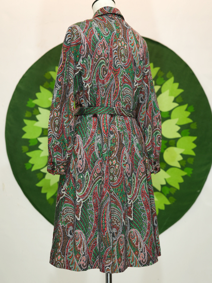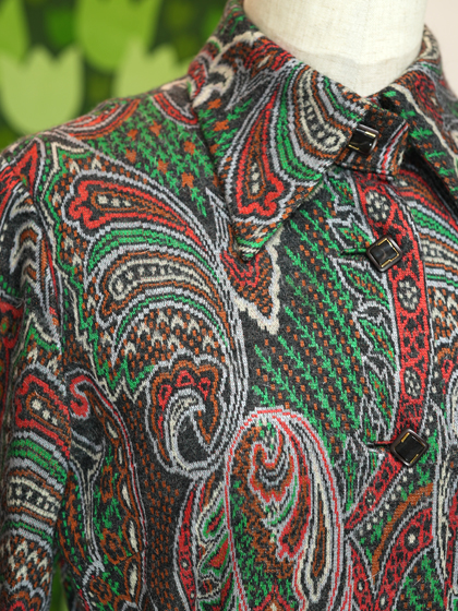 黒地に緑赤茶などのサイケ花柄ワンピース