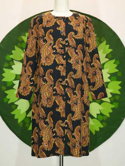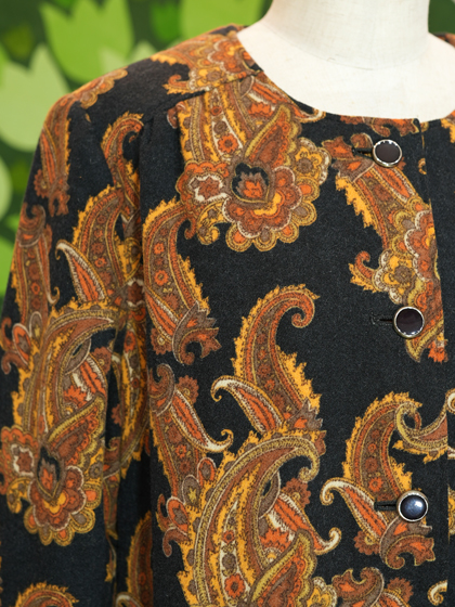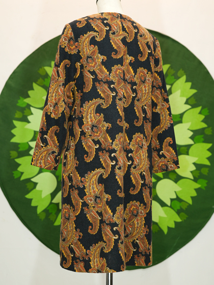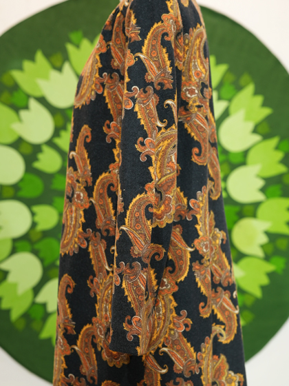 黒地に茶系ペイズリー柄ワンピース
