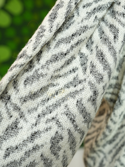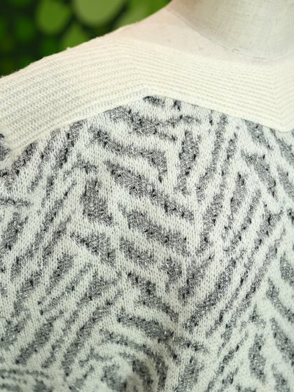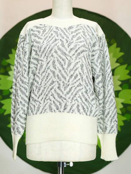 アイボリー地にグレーのゼブラ風柄ボートネックニット