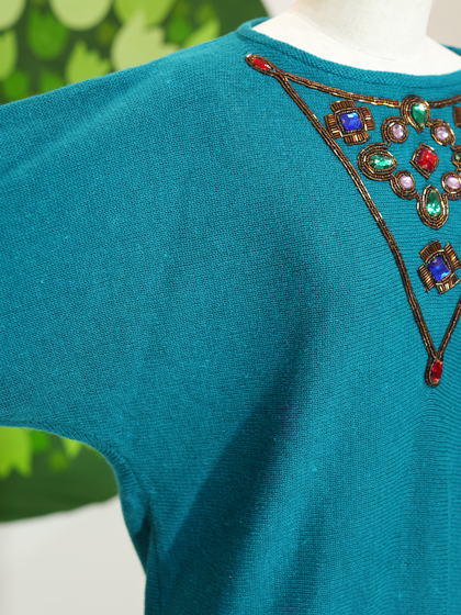 刺繍飾りがとてもかわいいです。生地は麻50%、綿50%です。