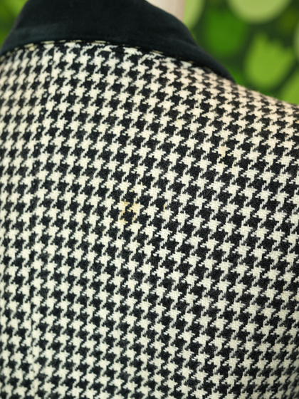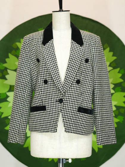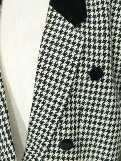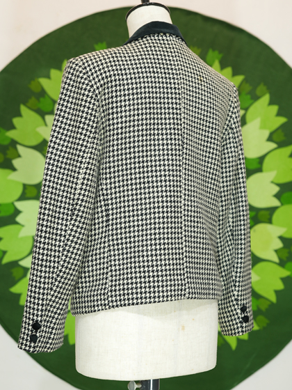 白黒千鳥格子柄に黒別珍地切替ジャケット