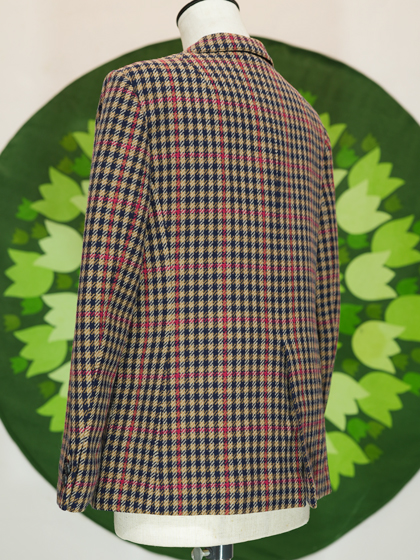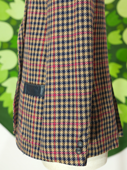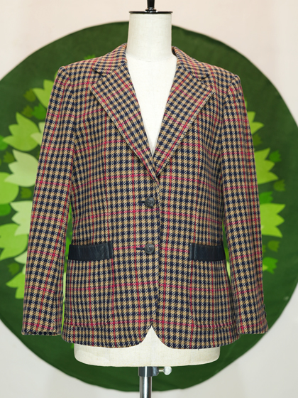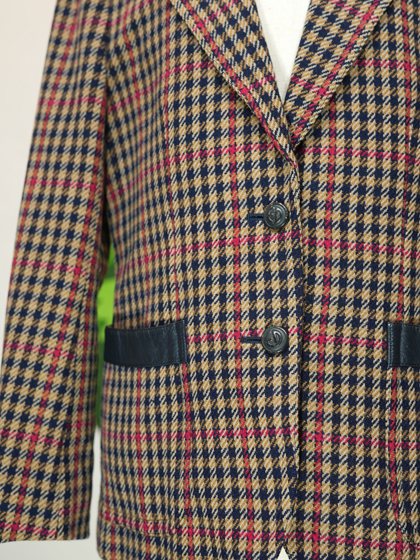 茶黒赤の格子柄にポケット黒レザー切替ジャケットです。