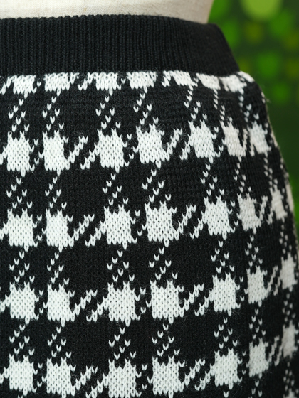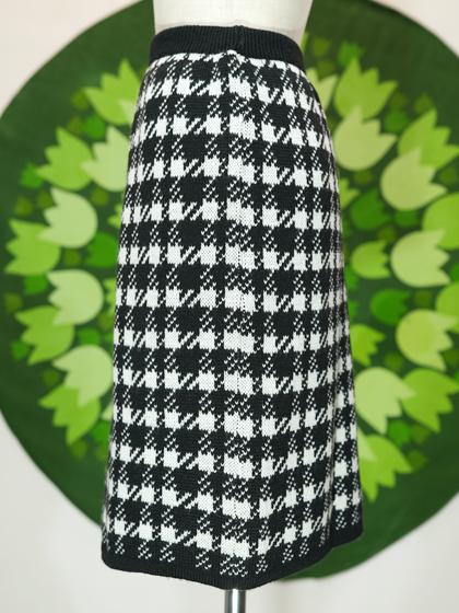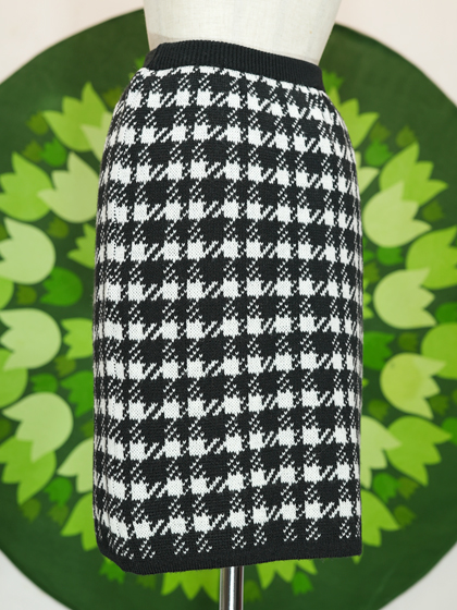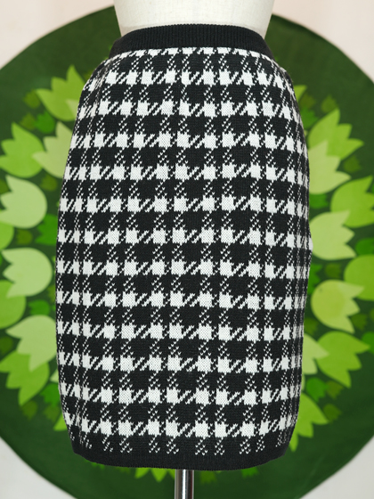 白黒千鳥格子柄ニットタイトスカート