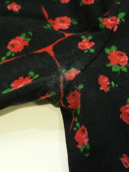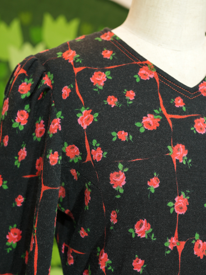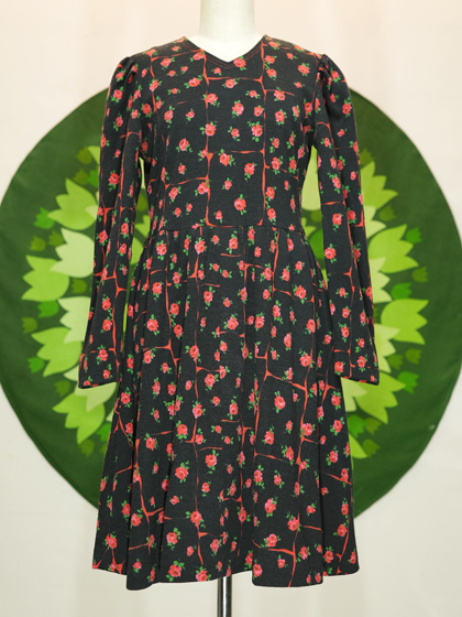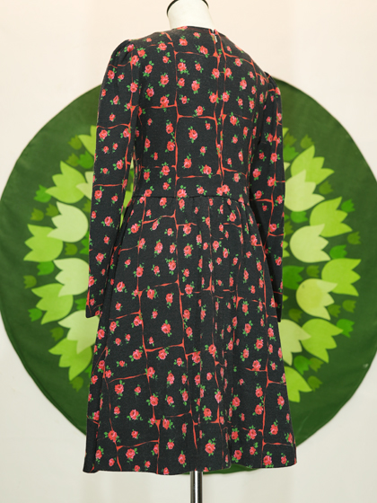 黒地に赤の薔薇と格子柄Vネックワンピースです。