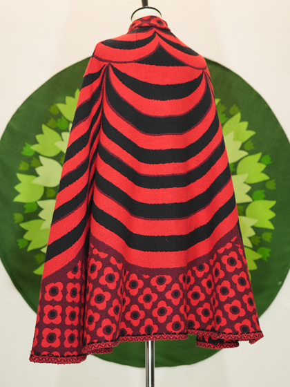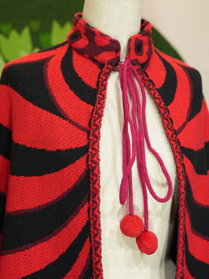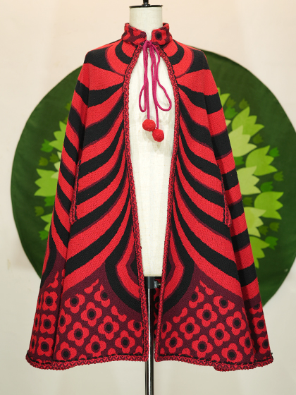 赤地に黒のラインと花柄ケープ