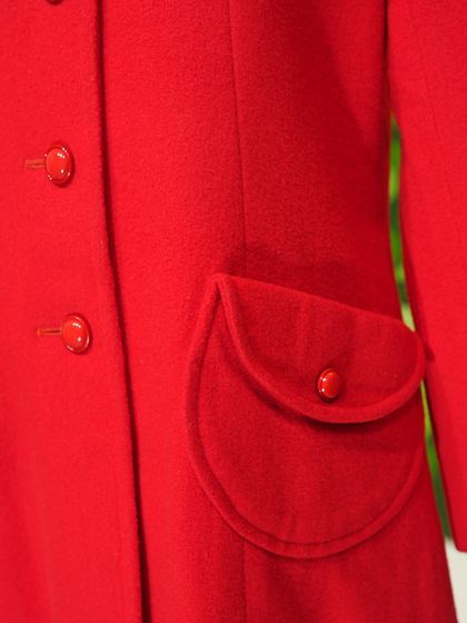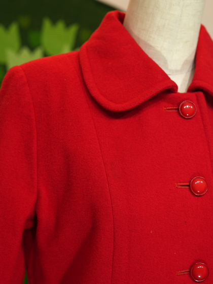 レトロでガーリーなデザインがとてもかわいいです。生地は毛93%、ナイロン7%です。