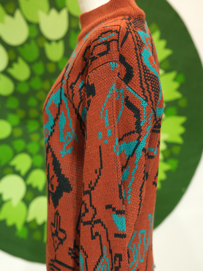 抽象的な柄がとてもかわいいです。生地はアクリル100%です。