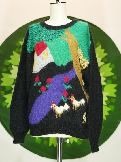 ほのぼのした風景柄がとてもかわいいです。生地は毛55%、ナイロン37%、レーヨン5%、ポリエステル3%です。