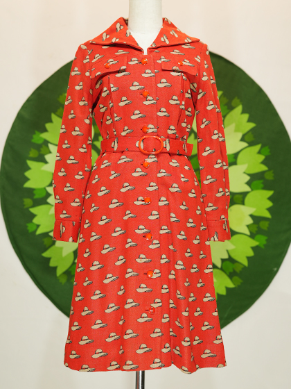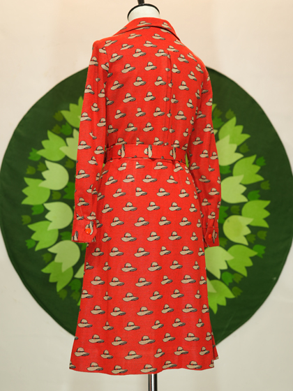 赤地に白いハット柄トライアングルカラーワンピース