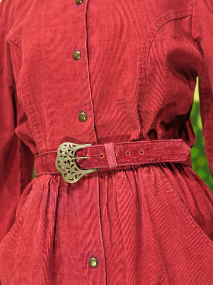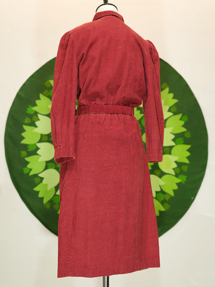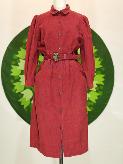 赤コーデュロイ地パフスリーブワンピース